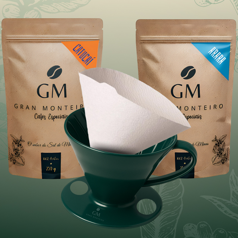 Prepare o seu café especial com o clássico método V60! Com este kit você leva para casa uma origem Catucaí de 250g, uma origem Arara de 250g, um coador V60 personalizado e 40 filtros de papel para que você aprecie a sua bebida favorita.
